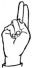 На ћирилици написано КРСТИМИР РАКОВАЦ састоји се из 15 слова [?]. Исписано ћириличном једноручном азбуком за глувонеме: